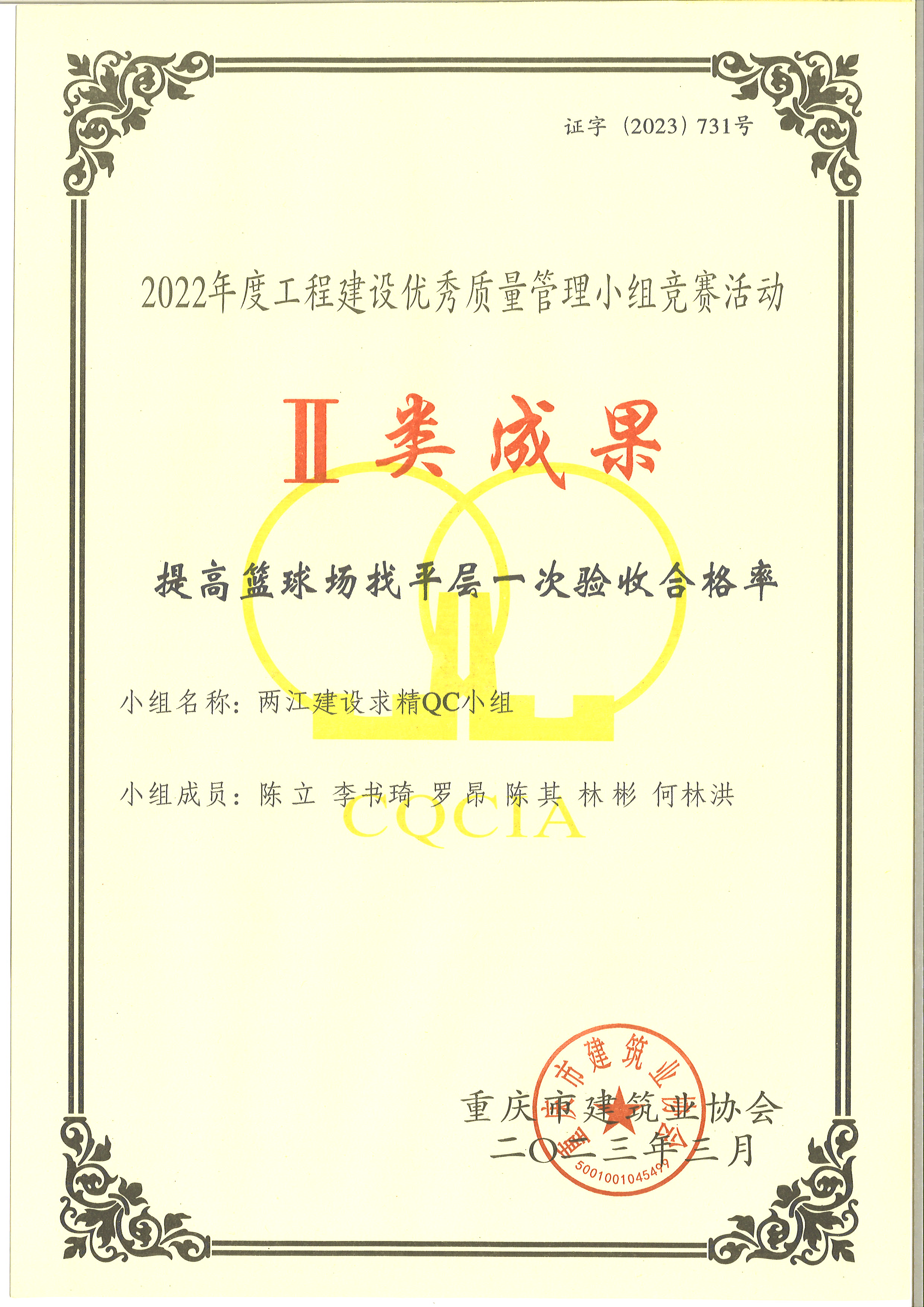 全國建設(shè)質(zhì)量管理小組活動成果大賽二類成果