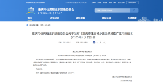 重慶市住房和城鄉(xiāng)建設(shè)委員會(huì)發(fā)布了《關(guān)于重慶市住房城鄉(xiāng)建設(shè)領(lǐng)域推廣應(yīng)用新技術(shù)(2025年)評(píng)審結(jié)果的公告》。經(jīng)廣泛征集、形式審查、專(zhuān)家評(píng)審、公示,全市初步遴選24項(xiàng)技術(shù)擬作為2025年重慶市住房城鄉(xiāng)建設(shè)領(lǐng)域推廣應(yīng)用新技術(shù)。兩江建設(shè)公司申報(bào)的兩項(xiàng)技術(shù)成功入選。